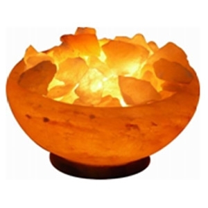 Himalayan Salt Fire Bowl Crafted Polished Bottom with Polished Wooden Base Upper with Himalayan Salt Chunks Small Weight 3-4 KG