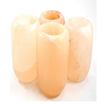 FOUR HIMALAYAN SOLID SALT GLASSES Size: 4 inches wide by 3 inches tall Average weight: 1 pounds 12.5 oz.